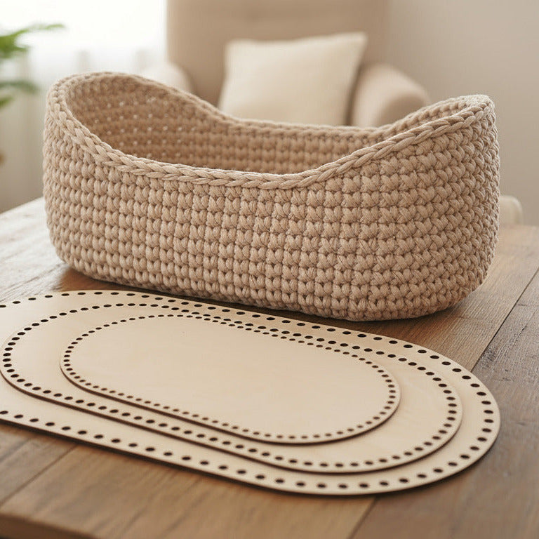 Создавайте красивые и прочные корзины для домашнего декора с помощью этой прямоугольной фанерной основы, специально разработанной для вязания крючком. Эти деревянные основы доступны в различных размерах, от 10×10 см до 25×25 см , и идеально подходят для создания корзин для хранения, органайзеров и декоративных контейнеров.